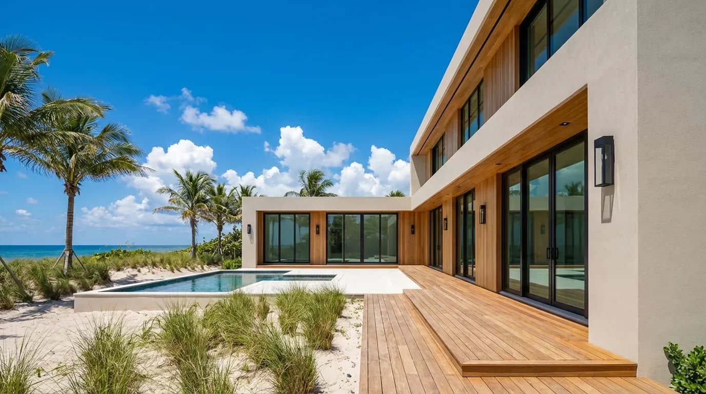 Impervious-surface ratios govern total hardscape plus structure to protect stormwater drainage — a real constraint in low-elevation coastal areas near Fort Lauderdale, Pompano Beach, and Boca Raton. Dellamano reviews the county property appraiser records, municipal zoning code, and any recorded plat restrictions before design begins. Catching a setback conflict at the survey stage costs nothing.